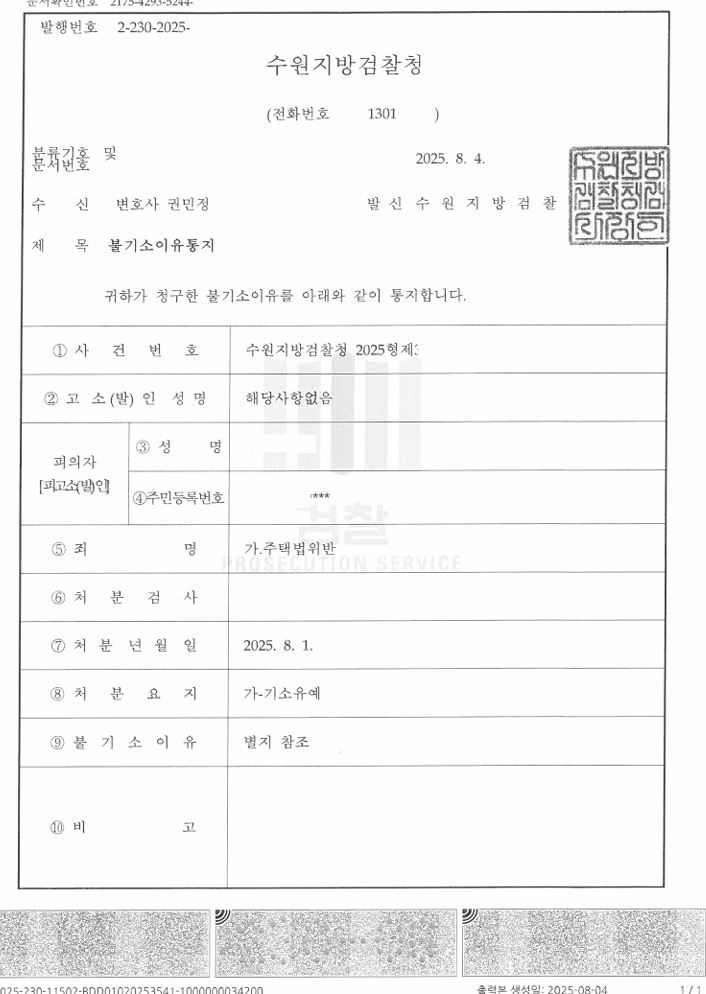 그 결과 담당 검사는 해당 피의자에 기소유예 처분을 내렸습니다.