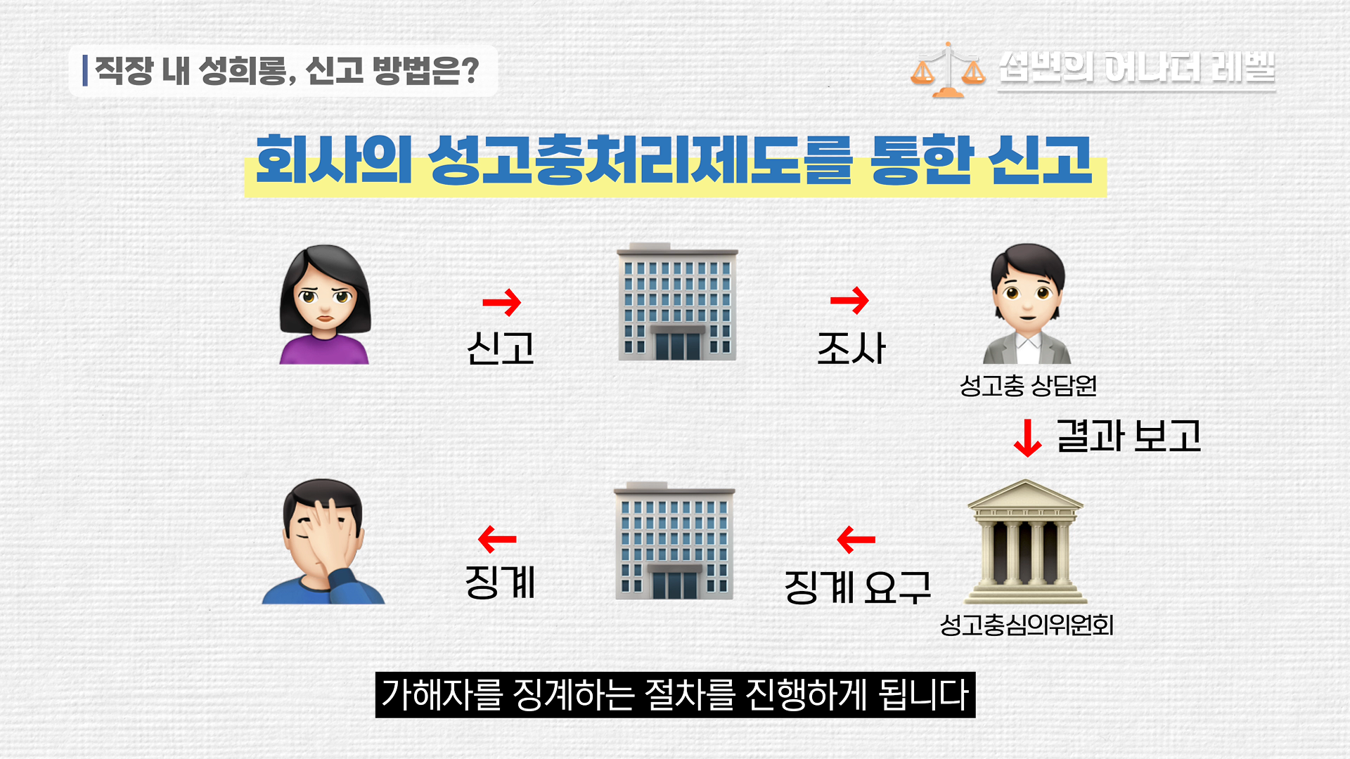 내부 신고 후 성고충 심의위원회에서 조사 및 징계 결정
