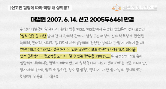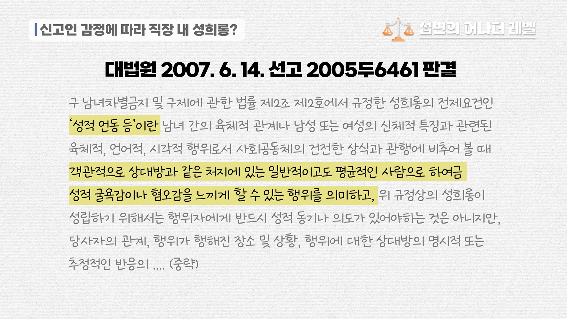 직장 내 성희롱은 단순한 감정적 문제로 판단되지 않으며,