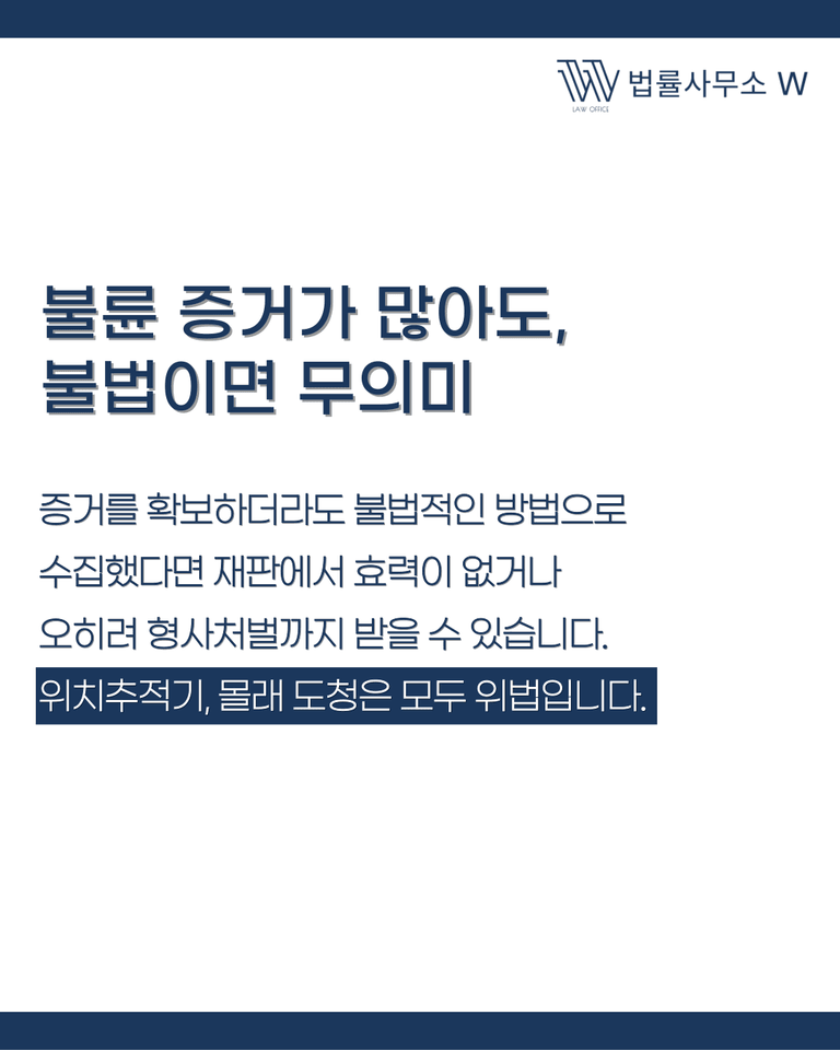 많은 분들이 증거를 확보하기 위해 몰래 위치추적기를 설치하거나 휴대폰을 도청하는 방법을 고민하지만, 이는 매우 위험한 접근입니다.