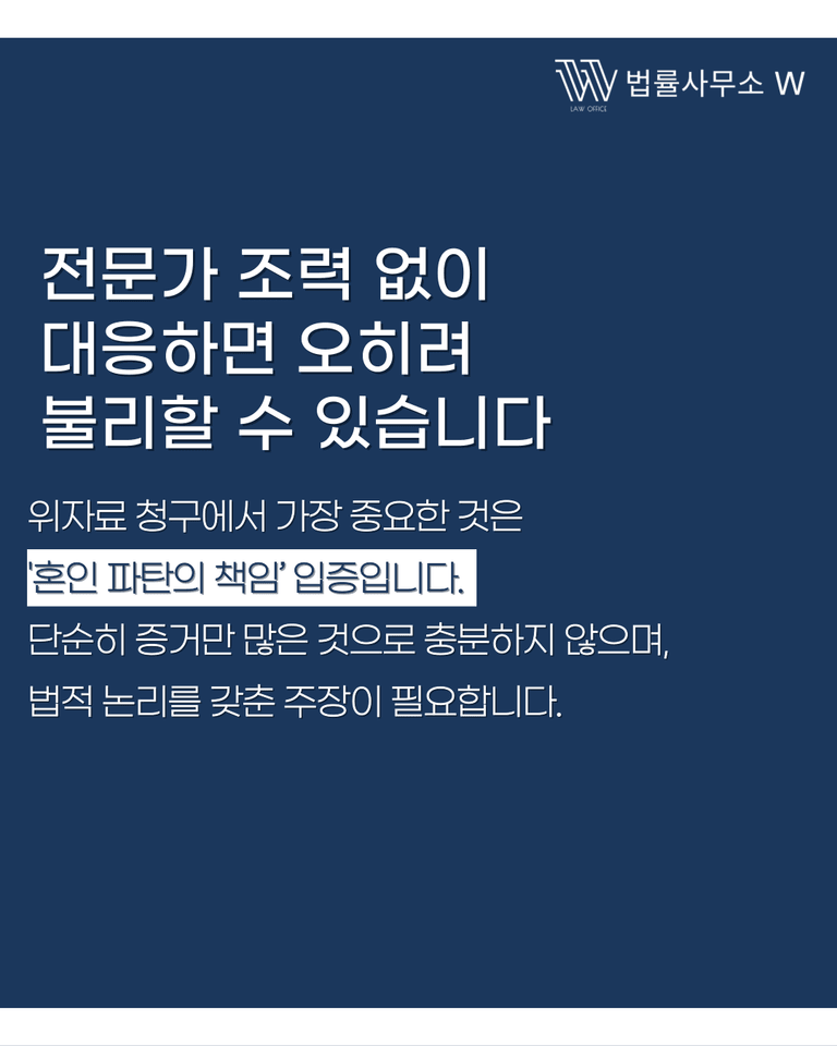 감정이 격해진 상태에서 단독으로 대응하면, 자칫 증거 확보도 실패하고, 위자료도 받지 못하는 결과로 이어질 수 있습니다. 실제 사건에서는, 불륜 증거가 명확했지만 절차적 하자나 부적절한 수집 방식으로 인해 청구가 기각되는 사례도 적지 않습니다. 위자료 청구는 경험과 전략이 필요한 분야입니다. 전문가의 조력을 받아 사건 초기부터 철저하게 준비하시기 바랍니다. 그 증거가 소송의 결과를 결정짓습니다.