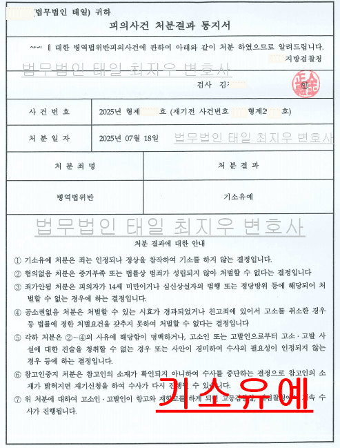 최근 병역법 위반 기소중지 사건에서 기소유예 처분을 받아 성공한 사례를 소개해 드립니다.