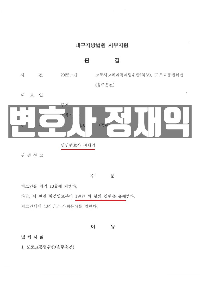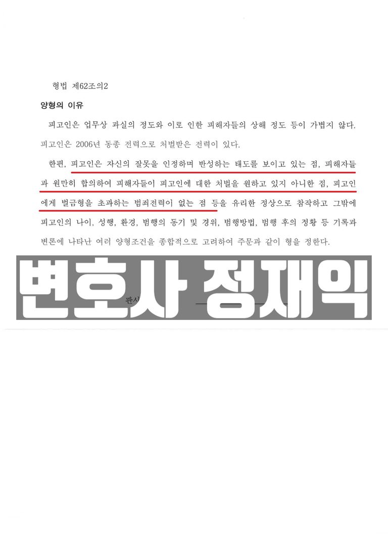 또한 재판부는 정재익 변호사가 주장한 양형사유를 모두 받아들여 집행유예 판결을 선고했습니다.