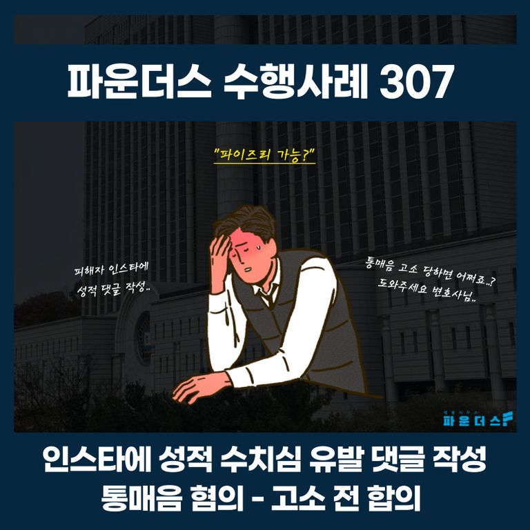 사건의 개요) 의뢰인은 일면식 없는 상대의 인스타그램에 “파이즈리 가능?”이라는 댓글을 달았고 통매음 고소를 당할까 두려운 마음에 변호인의 조력을 요청하였습니다.