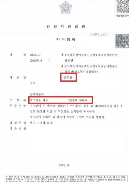 공무원 정보통신망법 위반 혐의, 벌금형 약식명령 받고 당연퇴직 면한 실제사례
