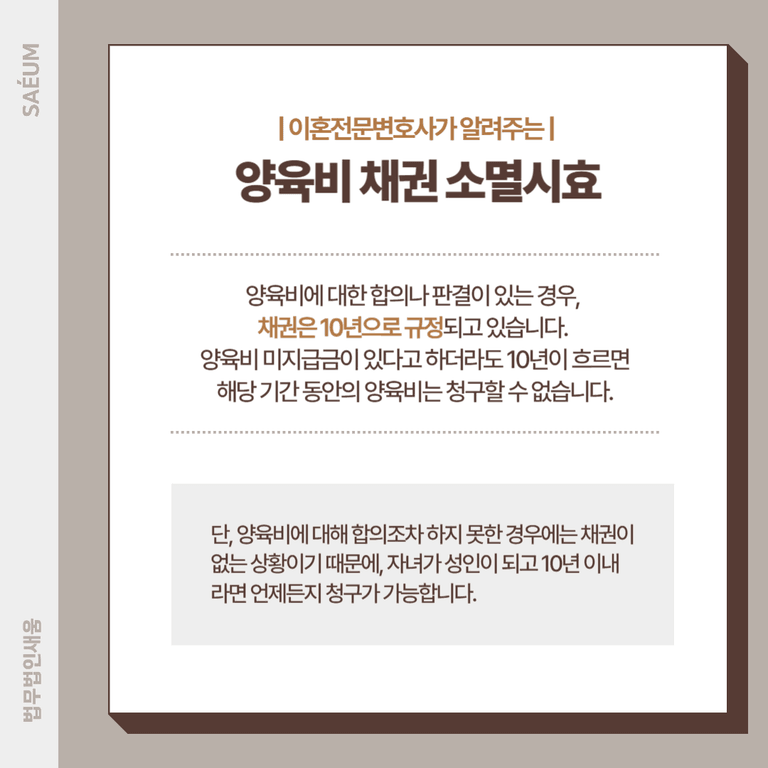 양육비 채권, 소멸시효를 확인해야 합니다.