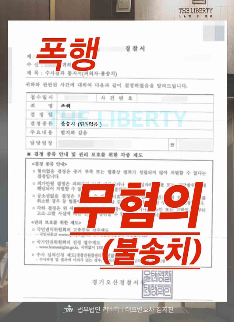 결국 담당 수사기관은 리버티의 정밀한 법리주장과 증거 제시에 근거하여, 의뢰인에게 혐의없음(불송치) 결정을 내렸습니다.