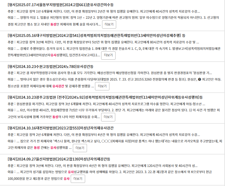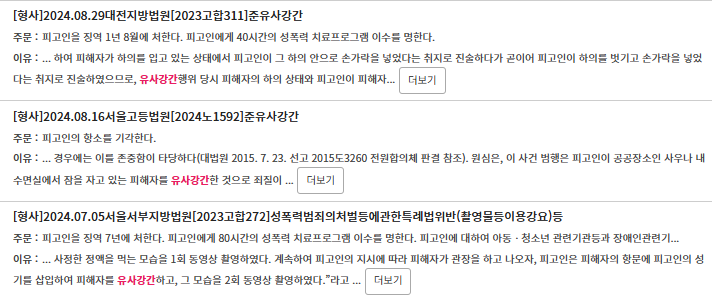 실제로, 아래와 같이 동성 간의 강제추행에서도 중한 형이 선고되었습니다.