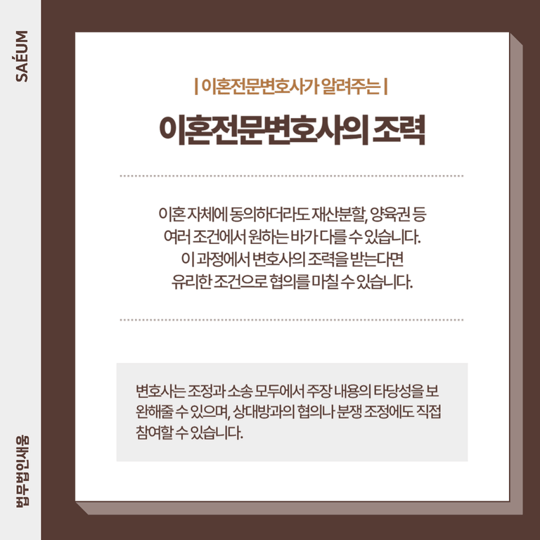 보다 유리한 결과를 이끌어내고 싶다면 반드시 이혼전문변호사의 자문을 받아, 상황에 맞는 계획을 세우고 신속히 대응하시길 바랍니다.