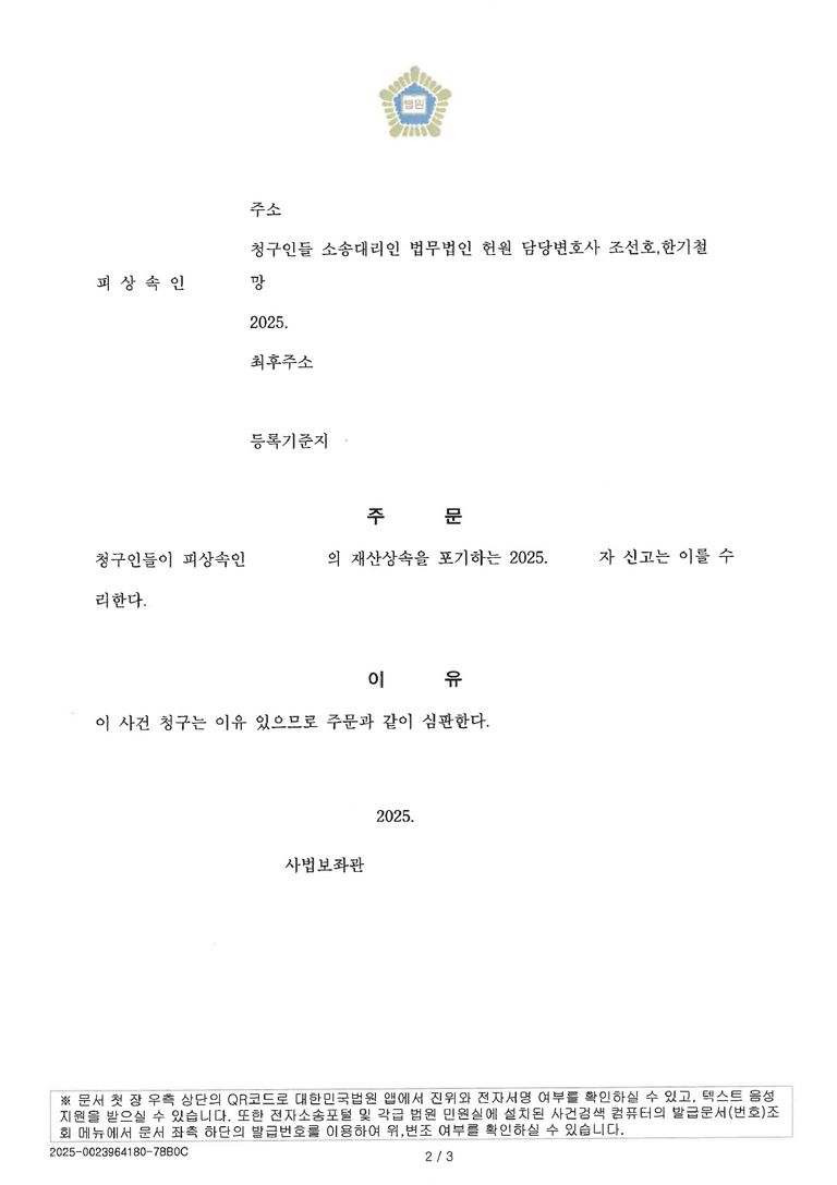 그리고 상속포기 결정을 받을 수 있었습니다.