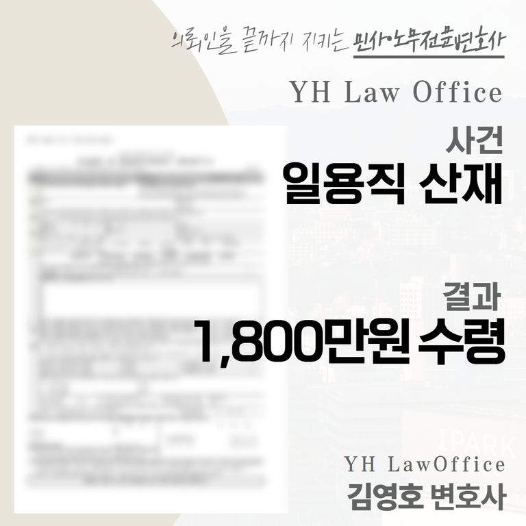 일용직 산재 보상 → 결과 : ‘1,800만원’ 수령