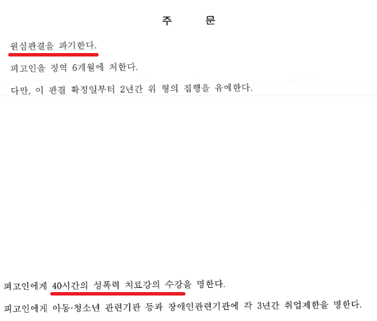 ▲ 의뢰인은 선고형에 대한 다툼이 아닌 병과된 여러가지 명령에 대한 양형 부당을 이유로 항소하였고,
