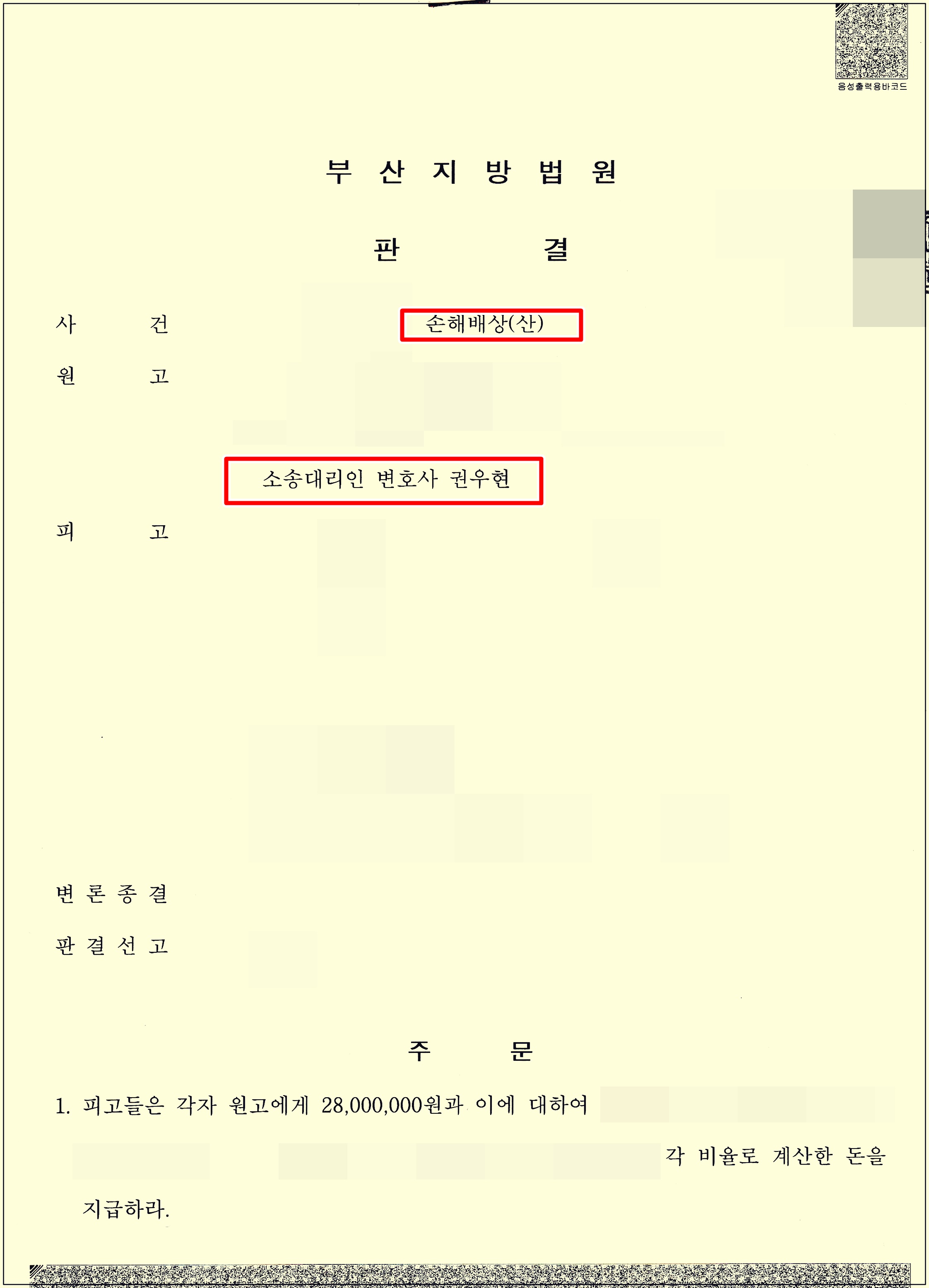 3. 업무상 재해로 인하여 산재처리를 받더라도 공단에서 위자료는 일절 지급되지 않고, 기타 피재자의 일실수입 등에 관하여 산재급여 외의 초과 손해가 있다면, 일반 민사소송을 통해 위자료와 일실수입 등을 보전 받아야 합니다.
