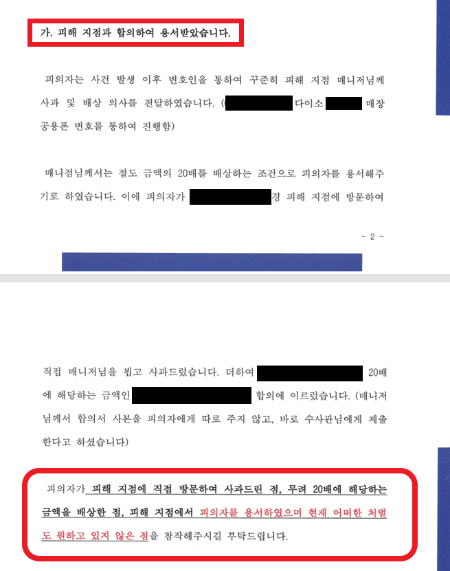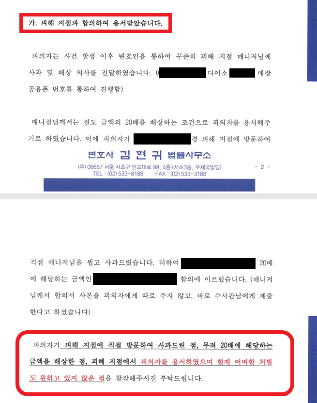 (피해 지점과의 합의는 무엇보다 중요한 선처 사유이다)