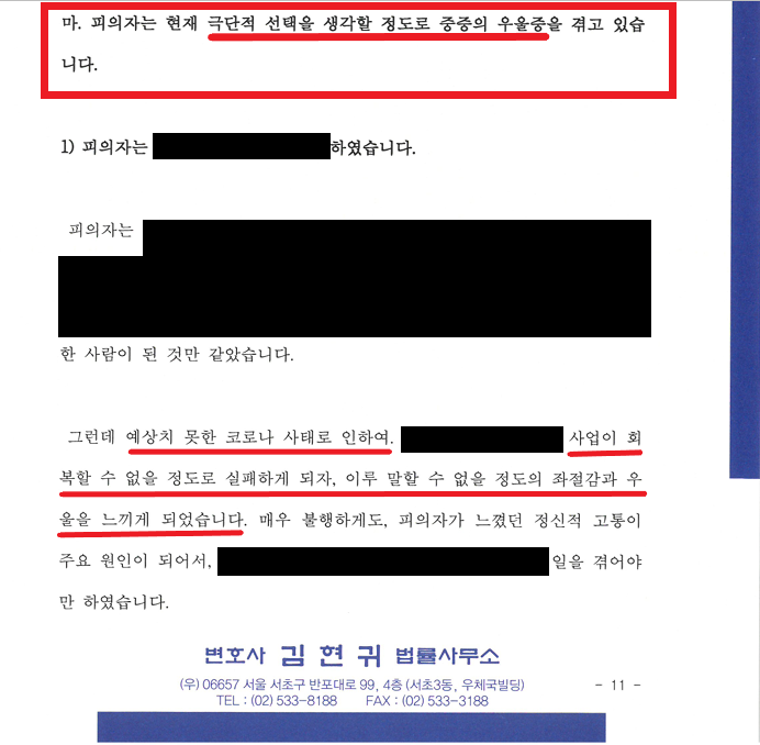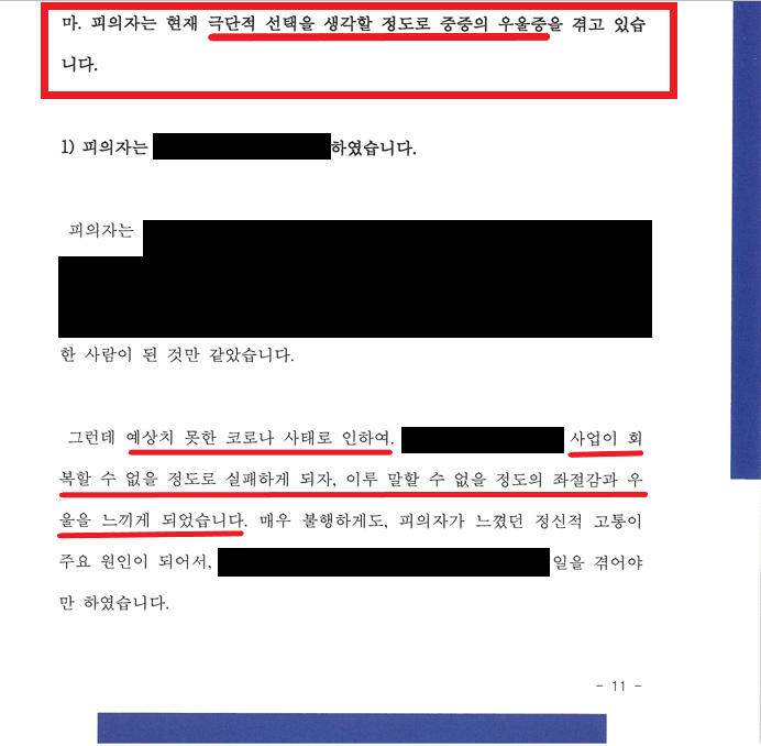 - 사건 당시에도 우울증에 시달리던 중 충동적으로 범행에 이름
