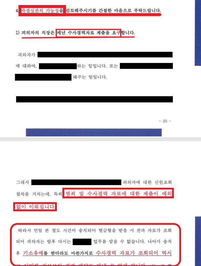 - 그런데 본 사건으로 인하여 처벌되어 전과기록이 생길 시 그만둬야 하는 상황임