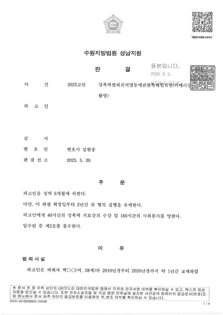 피고인이 불법촬영을 한 시점으로부터 계산하면 3년 5개월 정도 후에 형사고소가 이루어졌고, 재판을 받을 당시에는 불법촬영 시점으로부터 4년이 넘게 지난 상태 이었습니다.