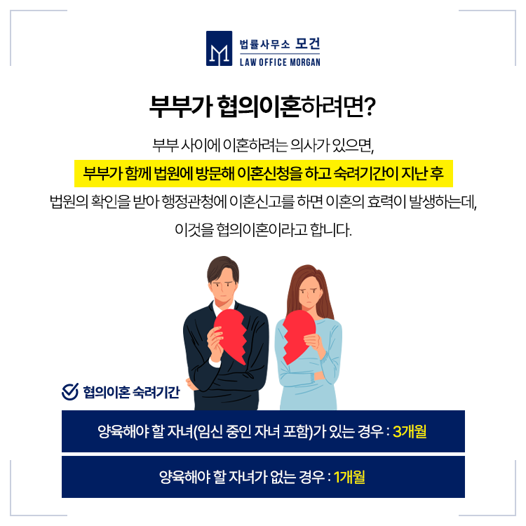 이때 협의이혼인 두 사람 모두 이혼에 동의하여야 함은 물론, 두 사람이 함께 가정법원에 방문하여 신청하고, 숙려기간을 거친 뒤 다시 가정법원에 방문하여 확인을 받아야 합니다.
