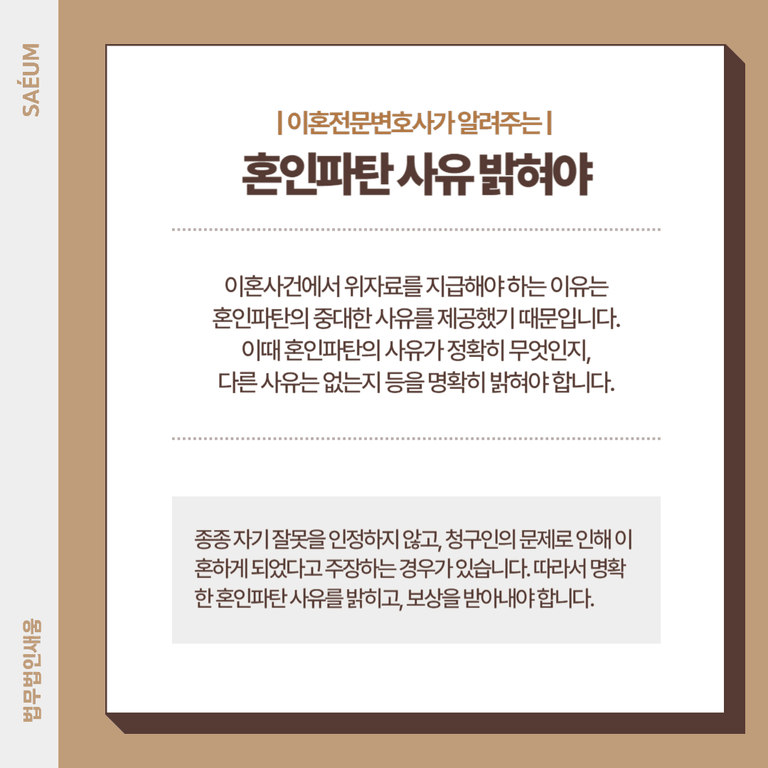 혼인파탄 사유를 명확하게 밝힐 수 있어야 합니다.