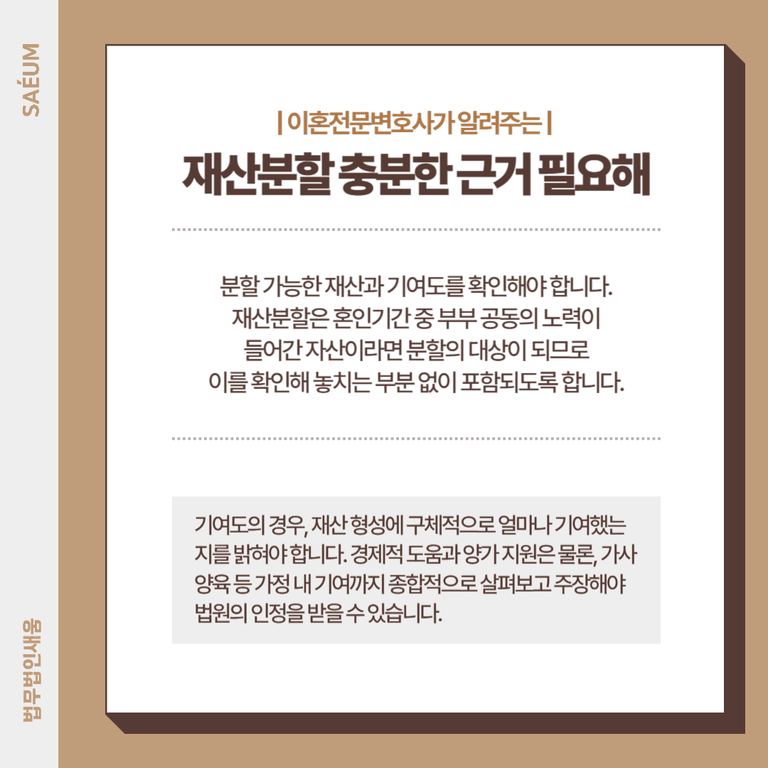 재산분할, 충분한 근거를 마련해야 합니다.