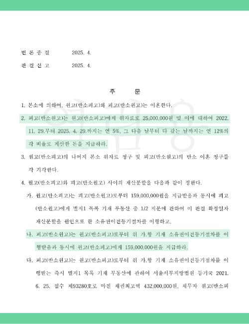 이혼 재산분할 및 위자료 청구 승소 사례