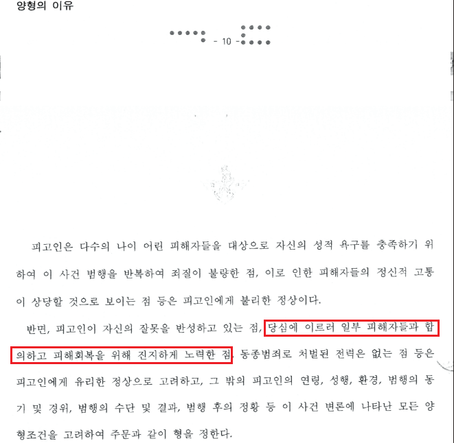 이에 저는 일단 감형을 위해서는 피해자들과의 적극적인 합의 시도가 중요하다고 판단하였습니다.
