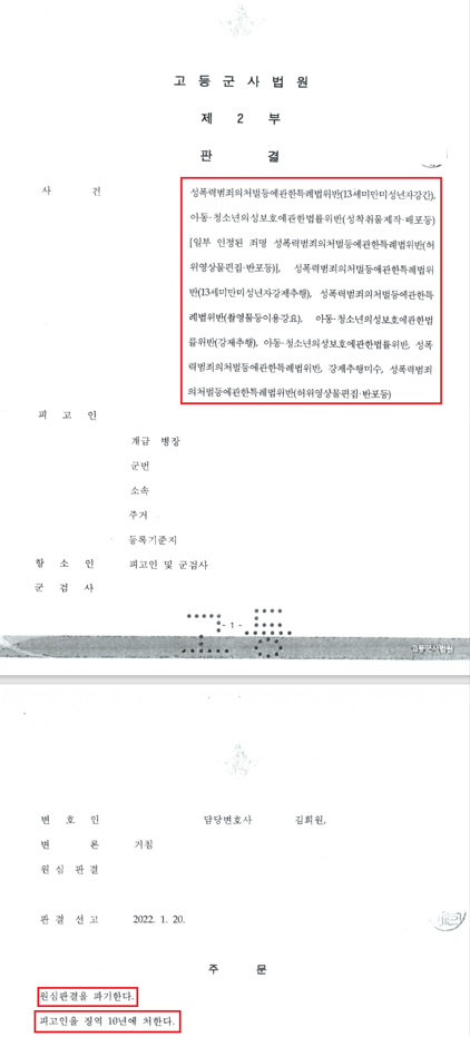 그에 따라 피고인은 성폭법 위반(13세 미만 미성년자 강간 및 강제추행, 촬영물등이용강요), 아청법위반(성착취물 제작 및 배포, 강제추행, 그리고 각 혐의에 대한 미수) 등으로 혐의가 인정되어 징역 15년의 중형이 선고되었습니다.