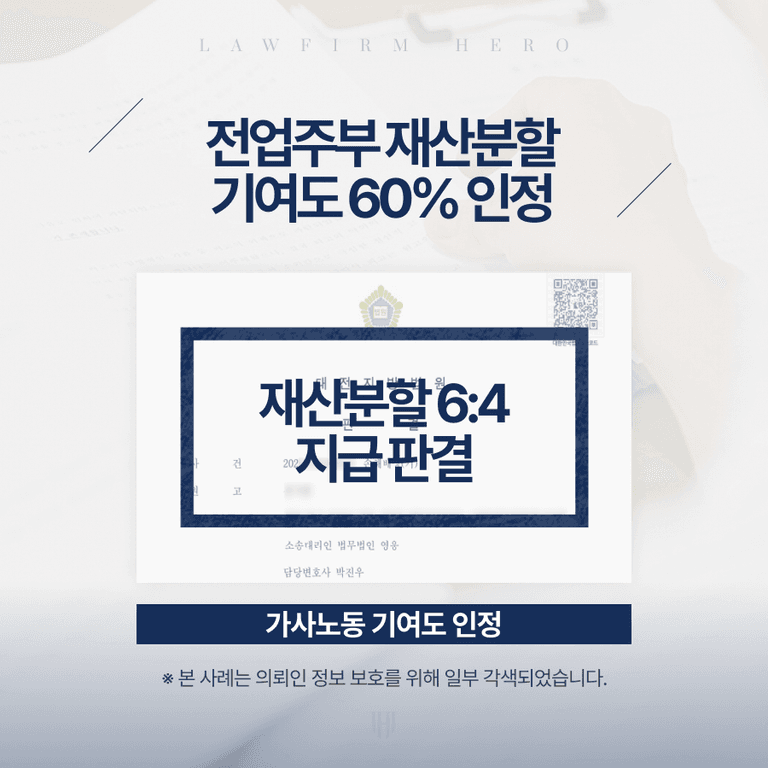 가사노동 기여도를 입증 후 6:4 지급 판결
