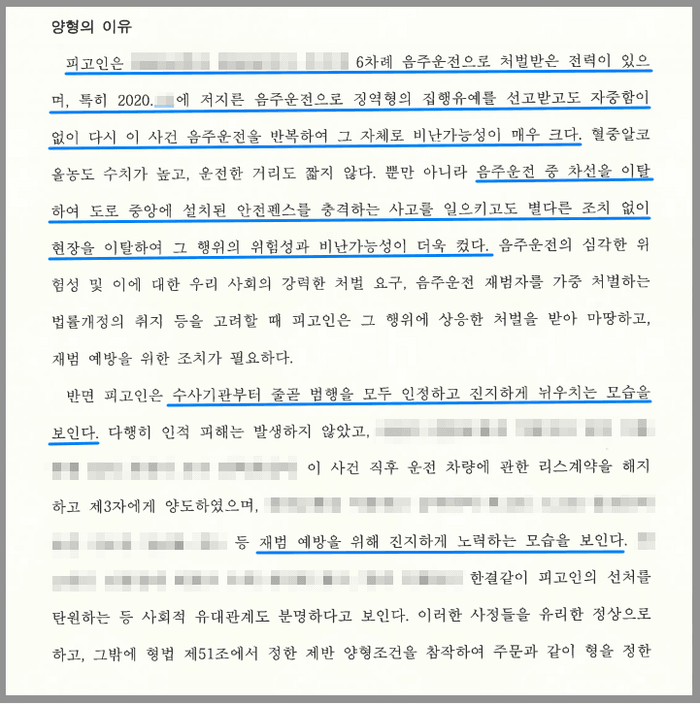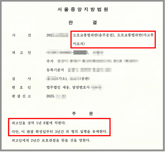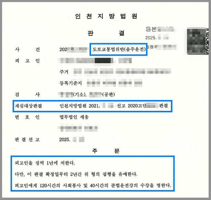 의뢰인은 과거 음주운전 등으로 6회 처벌 받은 전력이 있었고, 특히 이 사건 이전 마지막으로 적발되었던 사건에 대해서는 징역 2년에 집행유예 4년의 처벌을 받았습니다.