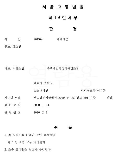 1심에서 패소한 A재건축조합 사건을 대리하여 항소심에서 전부 승소한 사안
