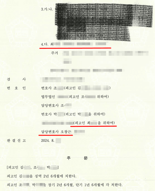법원은 오창근 변호사의 주장을 받아들여 아동청소년성매매에 대한 부분에 대해 무죄를 선고하였고, 다만 성매매한 사실에 대해서는 유죄로 판단하고 의뢰인에게 200만원의 벌금형만을 선고하였습니다. 다른 공범들은 실형 2년 6월이 선고된 것으로 볼 때 의뢰인에게 최고의 결과가 나온 것입니다.