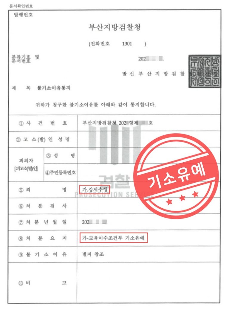 검찰에서 '기소유예' 처분이 내려졌고,