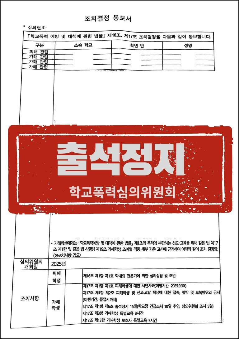 실제로 이 사건에서도 그런 점이 반영되어 출석정지 결정이 나온 것입니다. 출석정지 결정이 내려지면 학교 며칠 못 나오는 걸로 끝나는 것이 아닙니다. 생활기록부에 기재되고, 해당 기록은 졸업 후 4년동안 보존됩니다.