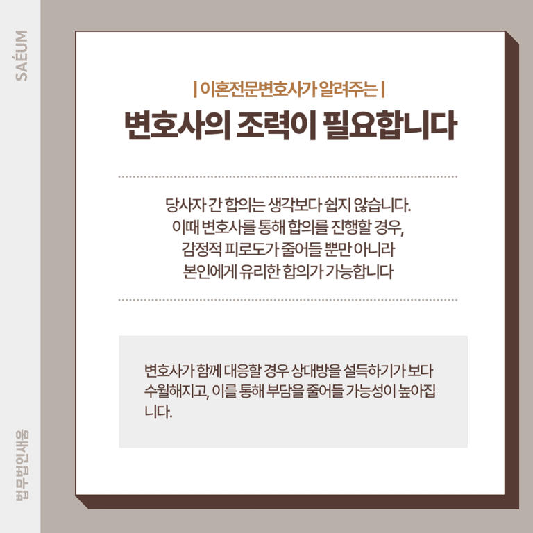 법무법인 새움은 A씨의 어려운 경제 사정을 강조하며, 청구금액을 전부 지급하는 것이 현실적으로 불가능하다는 점을 B씨에게 알리고 적극적으로 설득했습니다. 여러 차례 설득을 이어간 결과, 무사히 합의를 이끌어낼 수 있었는데요. 그 결과 과거 양육비의 30% 감액에 성공하였습니다.