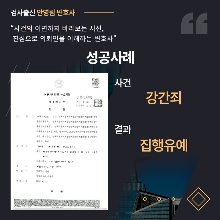 법원에서는 다행히도 ‘집행유예’로 선처해주며, 좋은 결과를 얻을 수 있었습니다.