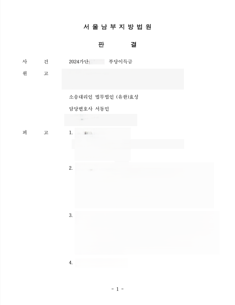저는 즉각 입금 받은 자들을 피고로 하여 민사소송 부당이득반환청구소송을 제기하였고 법원은 원고 승소 판결을 선고하여 의뢰인은 피해액을 반환받게 되었습니다.