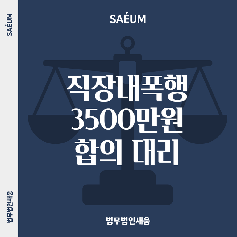 물론 이 과정이 쉽지는 않았습니다. B씨 측은 2,000만 원 이상은 절대 지급할 수 없다는 입장을 고수했으며, 이마저도 분납하겠다는 의사를 밝혔습니다. 하지만 법무법인 새움에서는 형사합의대리를 통해 지속적으로 상대방을 설득했고, 결국 최고 제시 금액의 2배에 가까운 합의금을 받는 것은 물론, 이를 일시금으로 받아 직장 내 폭행으로 인한 피해를 빠르게 회복할 수 있도록 도왔습니다.
