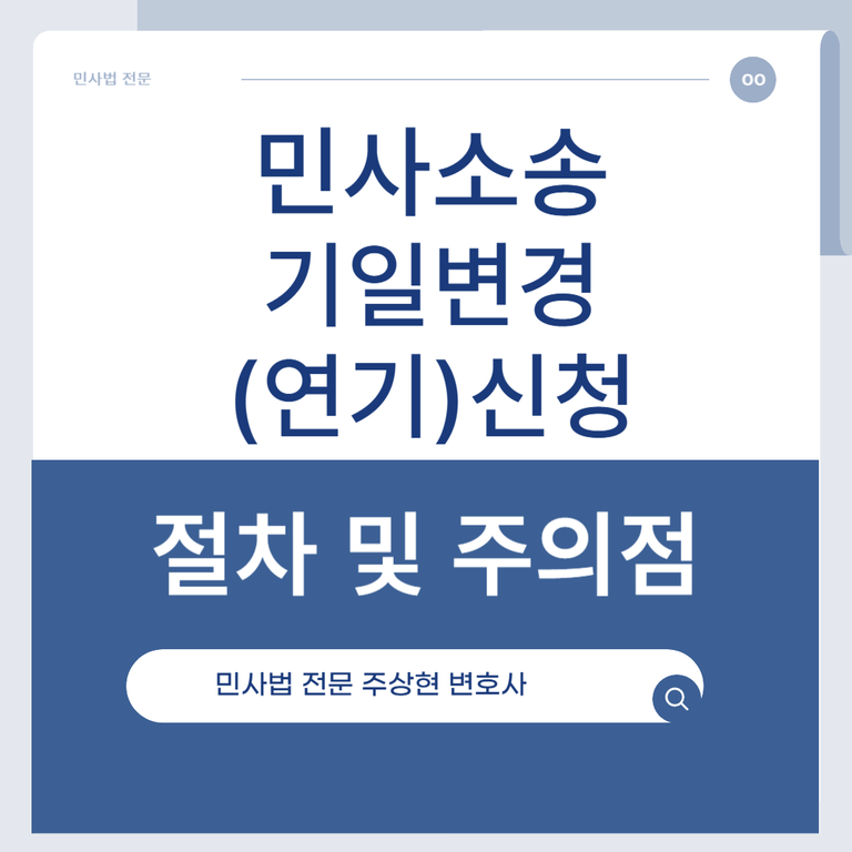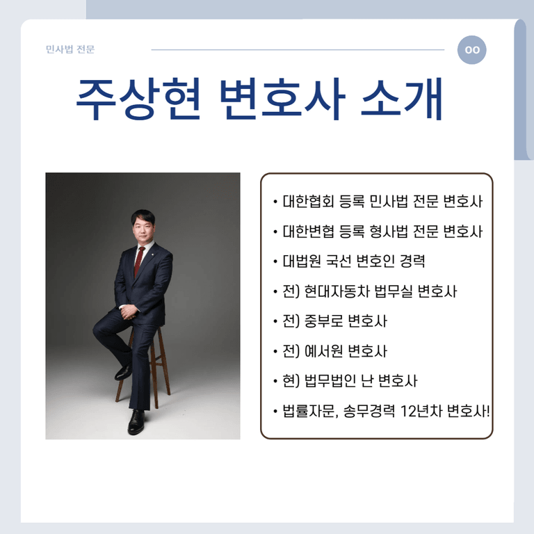 주상현 변호사는 민사법 전문변호사입니다. 변호사를 선임하면 당사자를 대신하여 기일 변경 신청 및 재판 출석이 가능하므로 기일변경(연기) 등 주요 절차에 효과적으로 대응할 수 있습니다.