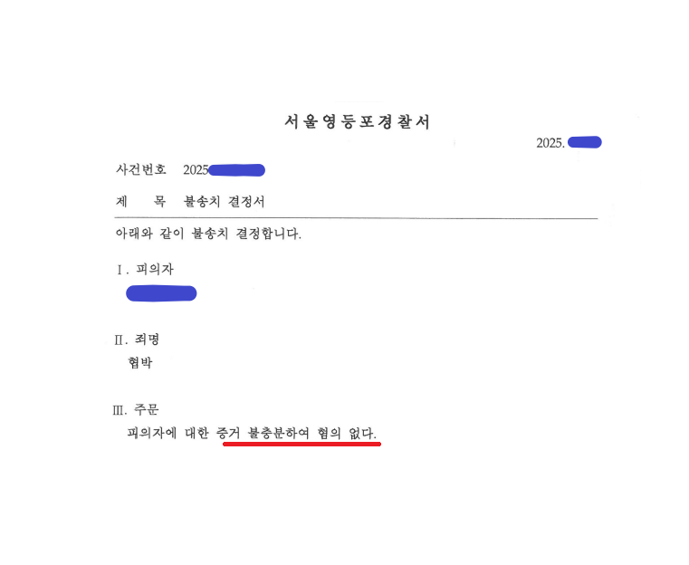 오늘은 협박죄로 고소당한 의뢰인을 변호하여 불송치 결정을 이끌어 낸 사례를 소개해드리겠습니다.