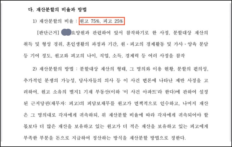 그 결과, 의뢰인의 재산분할 기여도를 75%로 높게 인정받을 수 있었습니다.