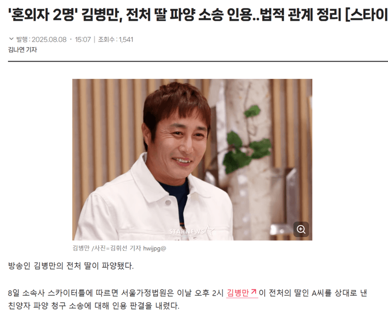 2025년 8월 8일, 서울가정법원은 방송인 김병만이 전처의 딸을 상대로 제기한 친양자 파양 청구를 인용했습니다. 이 판결은 단순한 연예계 가십을 넘어, 우리 민법상 친양자 제도와 파양 법리를 이해하는 중요한 사례가 되고 있습니다.