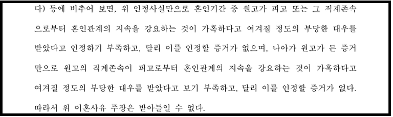 원고 주장의 피고 내지 피고 직계존속의 부당한 대우는 없었다고 판단