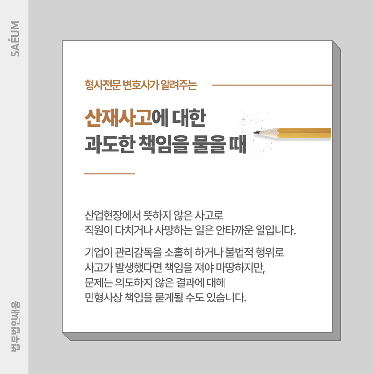 따라서 자신이 관리감독자 혹은 기업 대표로서 중대재해 노동자 사망사고와 관련해 부당하게 책임을 물을 위기에 처했다면, 빠른 법률 조력이 필요합니다. 향후 더욱 강력한 민형사상 조치를 받을 수 있으므로, 관련 사안에 정통한 법무법인 새움 변호사를 통해 대응해야 합니다.