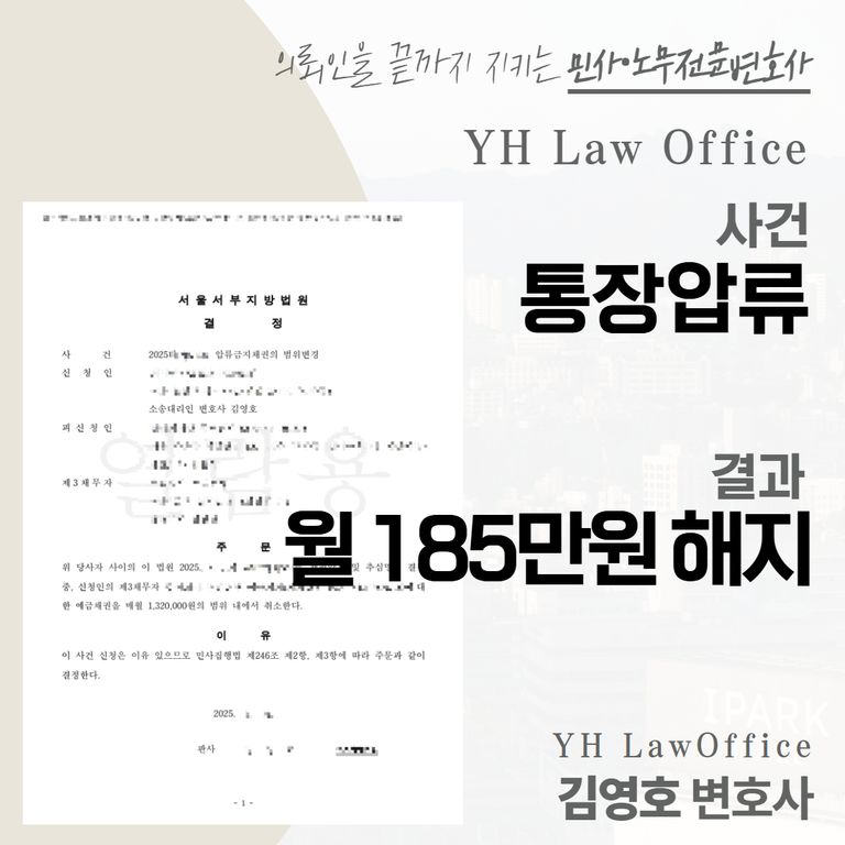 안녕하세요. YH 법률사무소, ‘압류 전문 김영호 변호사’입니다.