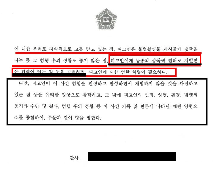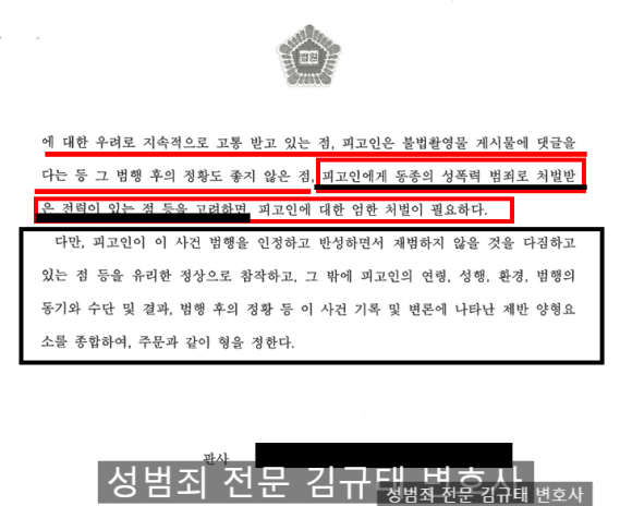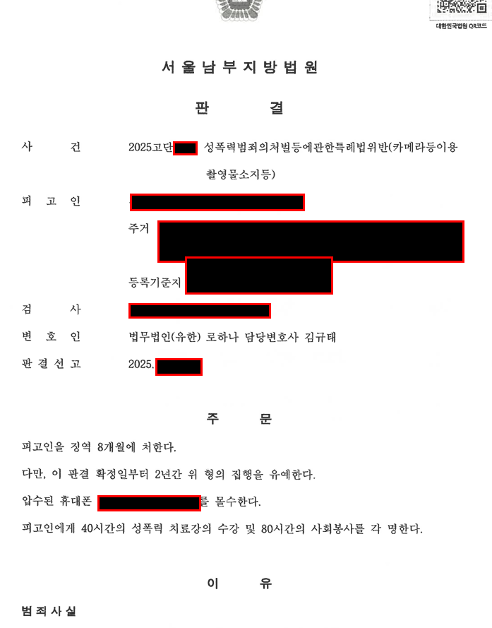 이 사건은 비록 피해자들과 합의에 이르지도 못했지만, 끈질긴 변론과 피고인의 적극적인 협력이 만들어낸 값진 결과입니다. 사건의 특성상, 촬영물에 등장하는 피해자들과 연락하는 것 자체가 쉽지 않고 또한 어렵사리 연락이 된다 하더라도 매우 높은 합의금 수준으로 도저히 합의 자체를 시도하지 못하는 경우가 많습니다.