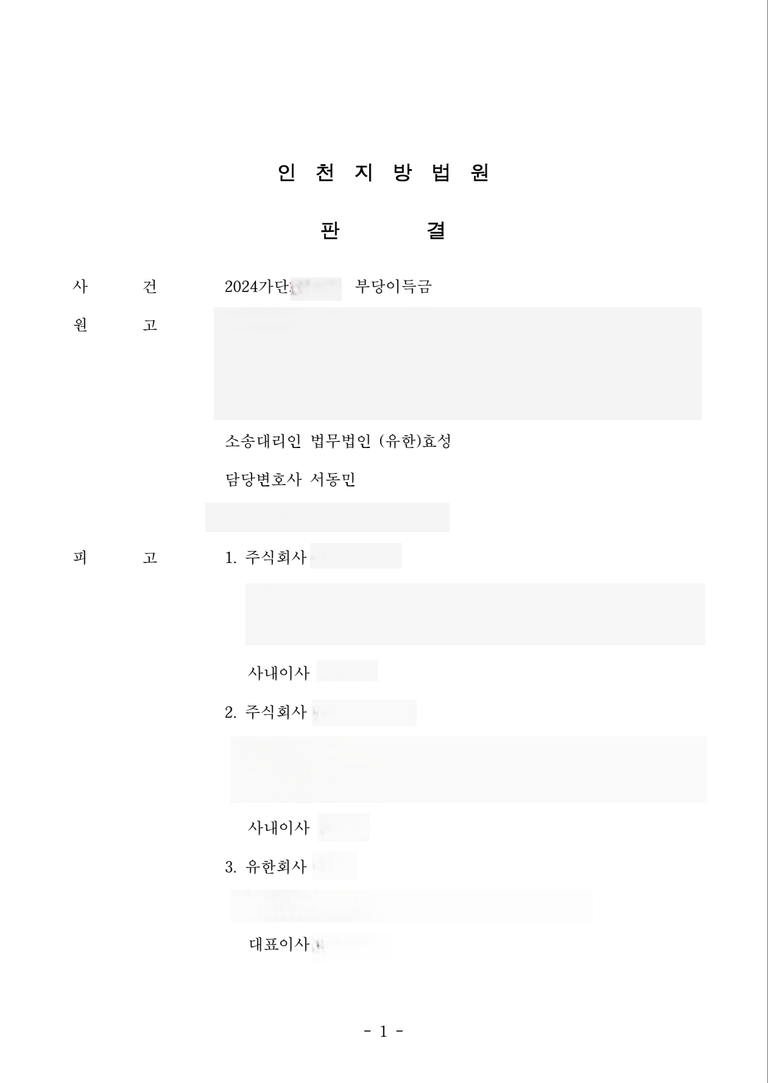 저는 즉각 입금 받은 자들을 피고로 하여 민사소송 부당이득반환청구소송을 제기하였고 법원은 원고 승소 판결을 선고하여 의뢰인은 피해액을 반환받았습니다.