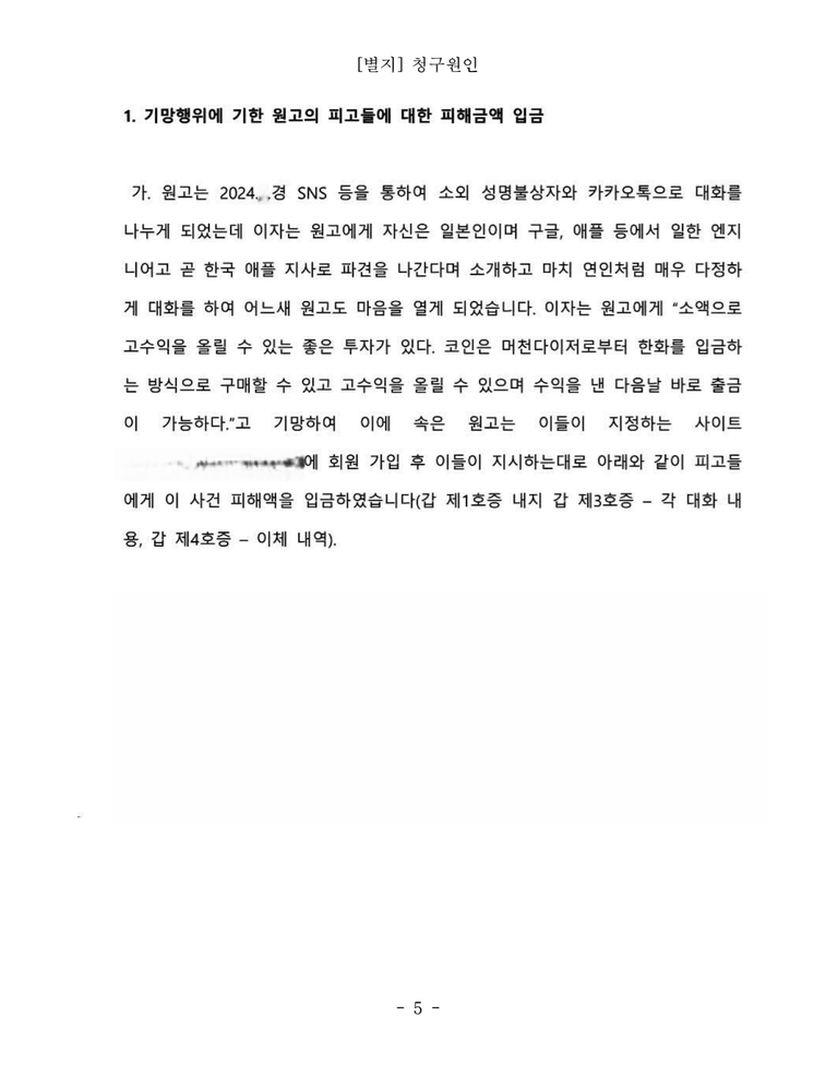 이 사건에서도 의뢰인은 로맨스스캠을 당하여 피고들에게 피해액을 입금하였고 이를 돌려받기 위해 저를 찾아오셨습니다.