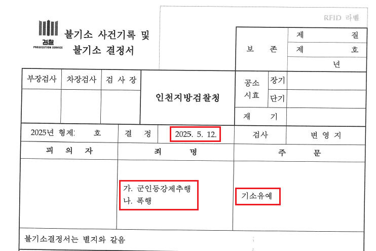 검찰은 최종적으로 기소유예 처분을 내려주셨습니다.