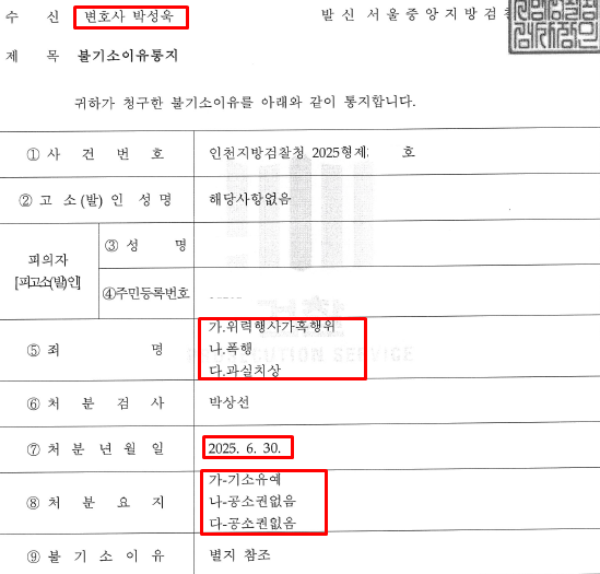 폭행, 과실치상 혐의에 대해서는 '공소권없음'