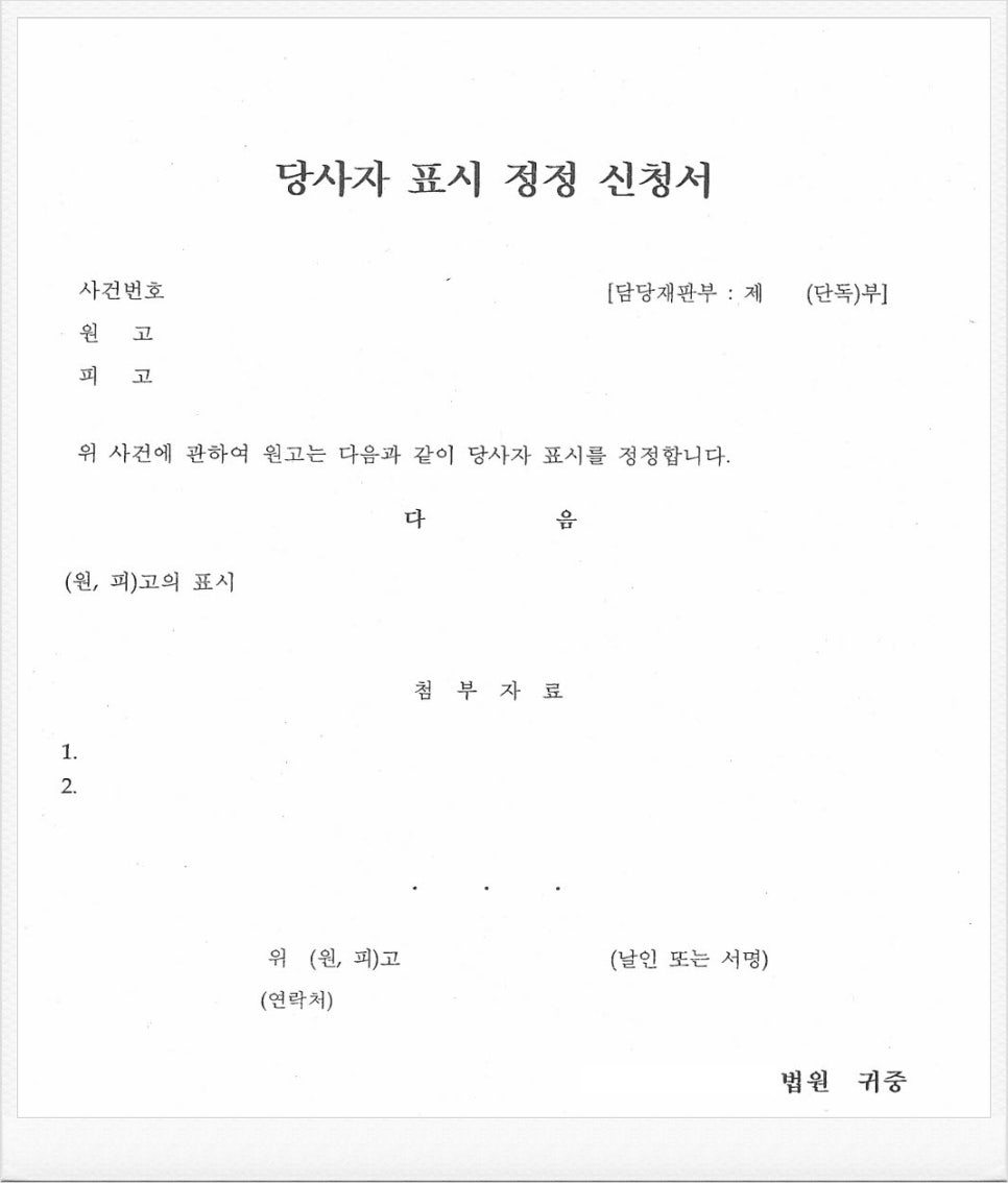 나. 당사자 표시 정정 신청서